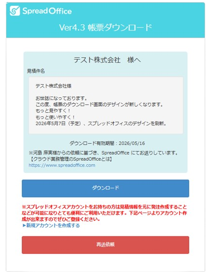 この度、お客様により快適にご利用いただけるよう、メールからアクセスいただく「帳票ダウンロード画面」のデザインをリニューアルいたします。