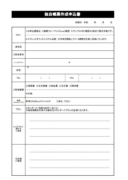 スタンダードプラン以上の方は、初回のみ、独自帳票カスタマイズが無料でご利用可能です。